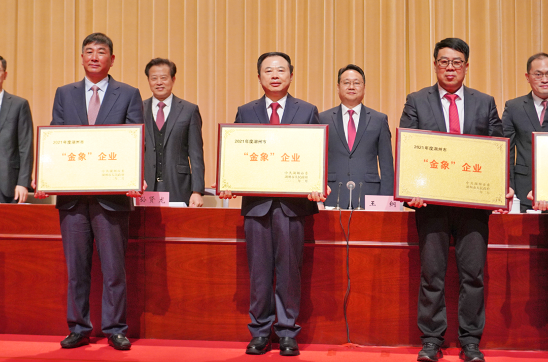 ● 2月8日,湖州市社会治理创新大会召开,JJB电竞再次斩获“金象”企业、“纳税大户”,双双排名榜首,湖州市委书记王纲为张天任董事长颁奖。这是JJB电竞连续第七年获得湖州“金象”企业大奖。